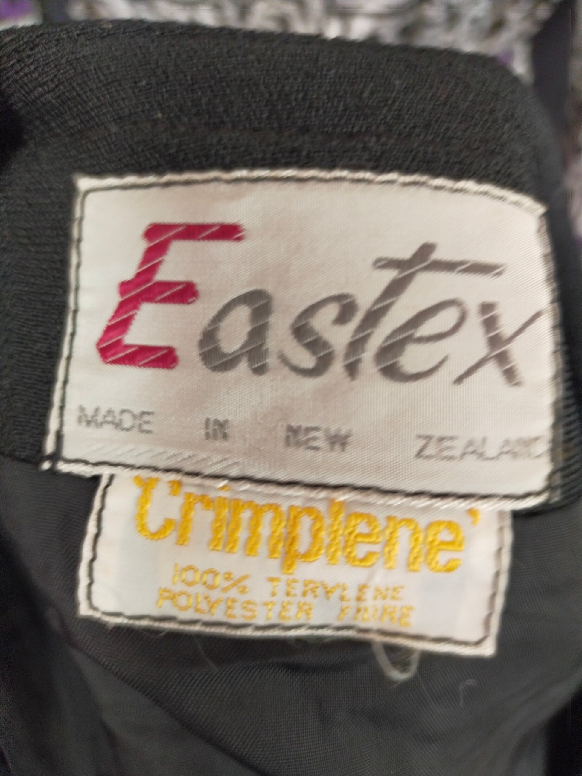 Dress for the office! Smart late 1960s. Two piece Eastex (NZ) dress/ gilet set. This is sold as a set. The dress has a generous collar. The dress pulls over the head.