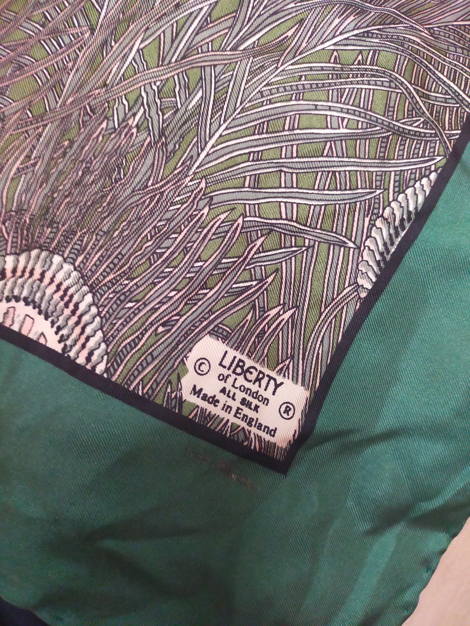Wrap yourself in luxury with an exquisite Liberty silk scarf with a classic Hera peacock feather pattern and hand-stitched hem. These retail at Liberty for the equivalent of $400. This is such a special find at a bargain price. Add a pair of my handmade peacock embroidered earrings.