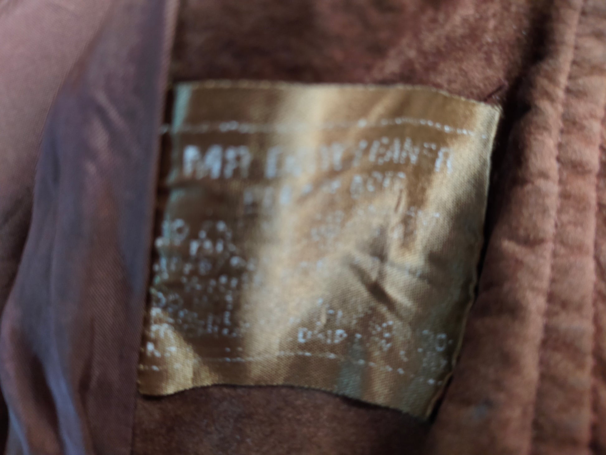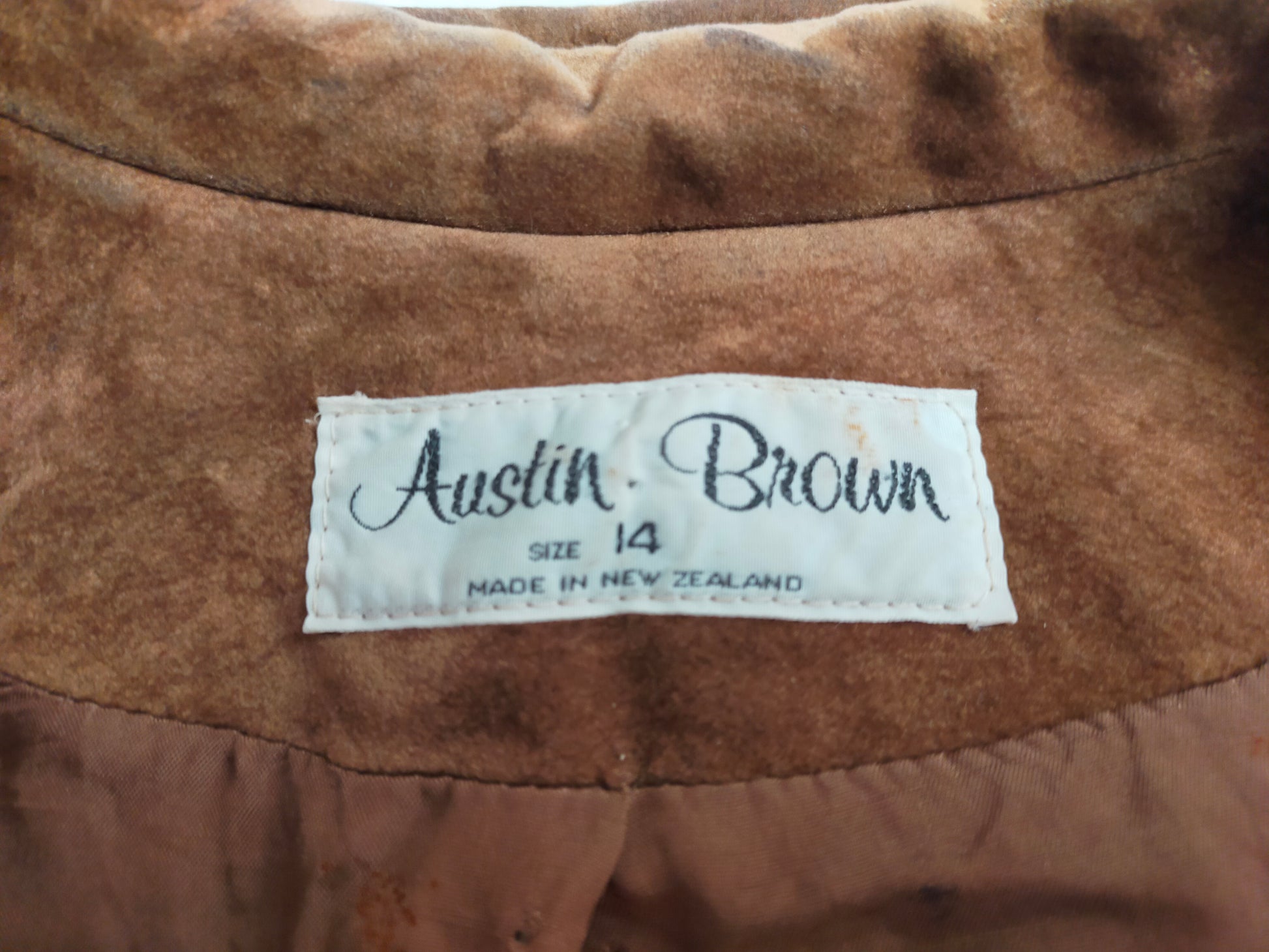 The suede used to make this Austin Brown bomber jacket is velvety soft. It's fastened with 5 buttons and has diagonal welt pockets. The sleeves are cuffed and the jacket is fully lined. It is in good condition for a jacket of its age but has a few marks as per photos.
